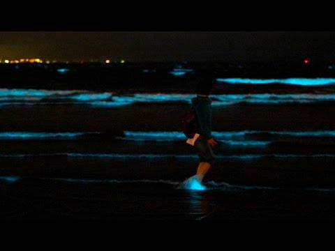 Japanese beach turned into beautiful fantasy world as nighttime ocean glows blue【Video, photos】