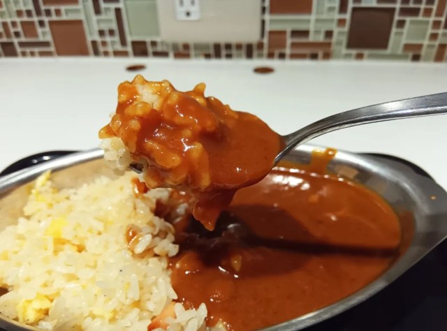 Following our in-office rule of “He who sits by the curry as it cooks gets first taste,” taste-testing duties fell to Seiji, who reports that by not adding water to the pot when cooking the curry, the flavor of the roux is deep and direct. Everything was properly cooked, too, with no unexpected raw bits of meat or vegetable.