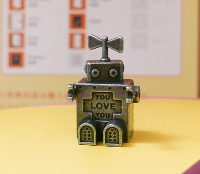The robot is 3.5 centimetres (1.4 inches) tall, weighs 35 grams (one ounce) and was designed by game designer Kouichi Ooyama. The words “You Love You” are engraved on the body, and in case you were wondering, the robot was given a name when he was first developed – G.O.R-01, which stands for “Good Old Robot”.