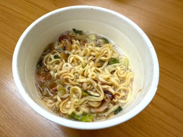 When he opened the lid, he was hit with a garlicky aroma that really did remind him of authentic motsunabe. Even the taste was pure motsunabe to him, with almost no trace of typical Cup Noodle. Honestly, this felt more like a completely different product than a modification, but it totally worked.