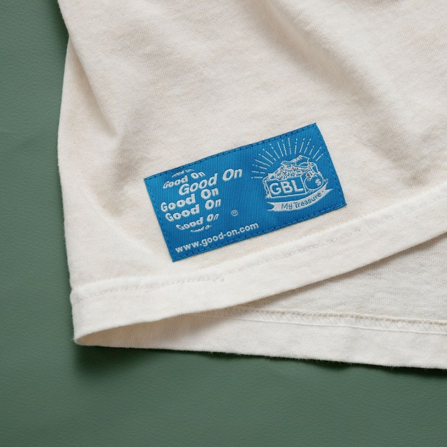 ▼ The back of the shirt is plain, but sports a Good On/GBL collaboration tag.