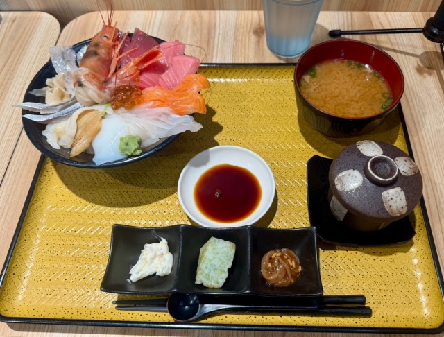 Senba Yachaba Iwaki no Daidokoro has an eat-in space too, and so Go was able to treat himself to a fantastic kaisendon (mixed sashimi bowl).