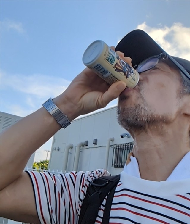 Finally, though, he came across a convenience store, and ducked in for a refreshing canned ice coffee.