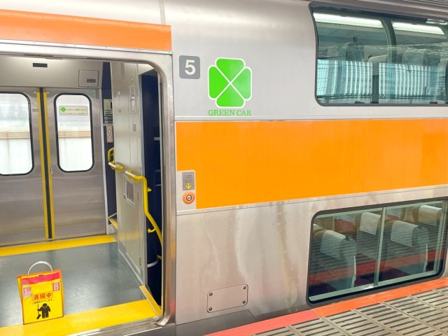 ▼ Ahiruneko, living the Shinkansen life on a Chuo Green Car train.