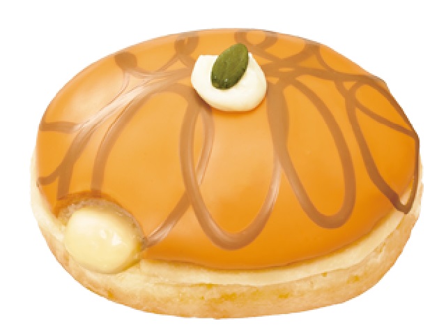 Finally, the Caramel Pumpkin Pudding (363 yen) is a bit of a mystery. Krispy Kreme describes it as having a pumpkin coating decorated with lines of caramel, plus a mild caramel filling and a pumpkin seed placed where the stem would go on an actual pumpkin. However, usually desserts in Japan billed as “pumpkin” flavor are actually recreating the flavor of kabocha, a type of squash that’s often referred to as Japanese pumpkin but which tends to have a more pronounced natural sweetness than the Western pumpkin used for things such as American-style pumpkin pie. In its Japanese-language description of the Caramel Pumpkin Pudding, though, Krispy Kreme makes sure to refer to the flavor as pampukin (the Japanese pronunciation of “pumpkin”), and doesn’t use the word kabocha even once, so this might be a rare case of a legitimate pumpkin-flavored dessert in Japan.