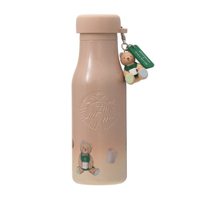 These stainless steel bottles come with a lid cover and an original collaboration-exclusive bear charm. The lid cover is removable, allowing you to use the bear charm on its own as a keychain accessory.