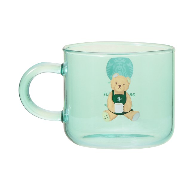 These tumblers come with a snow globe built into the base, allowing you to swirl sparkly, star-shaped confetti around a Gelato Pique bear in a green apron with mug in hand, an original design for this collaboration.