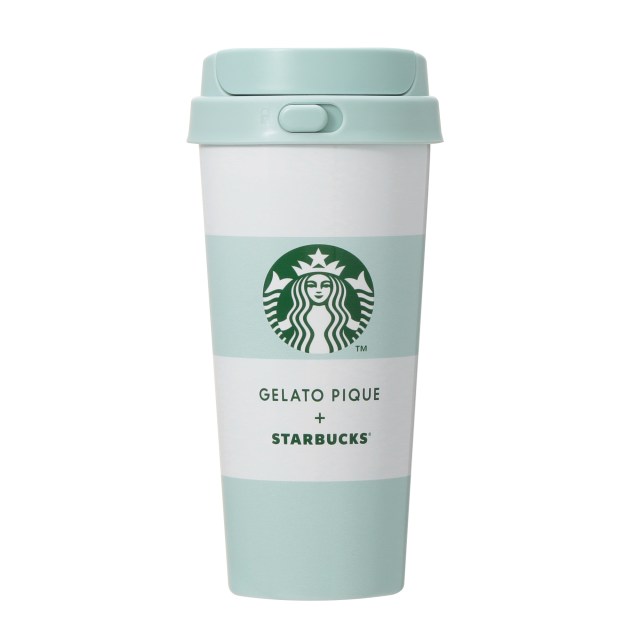 This reusable cup is adorned in Gelato Pique’s iconic two-colour “border” stripe, using a mint green hue unique to this collaboration, inspired by the colours of both Gelato Pique and Starbucks.