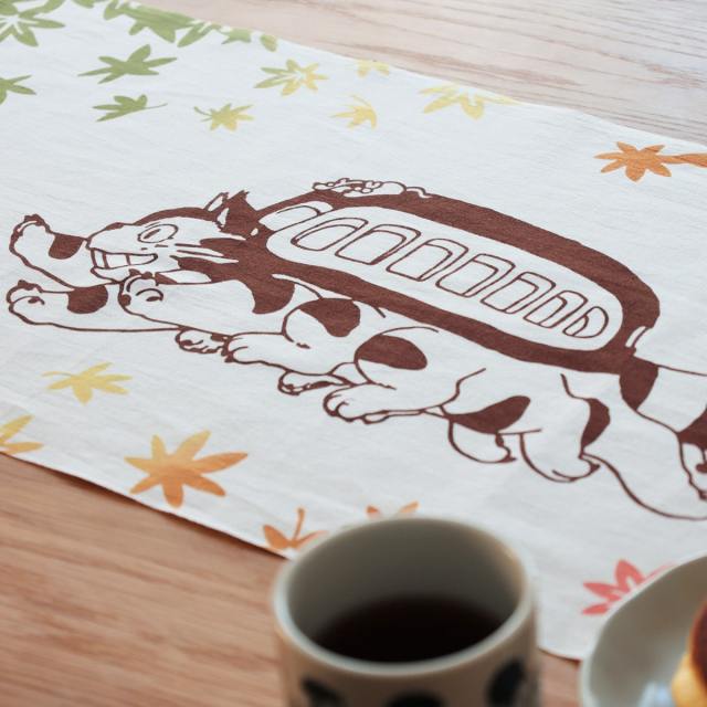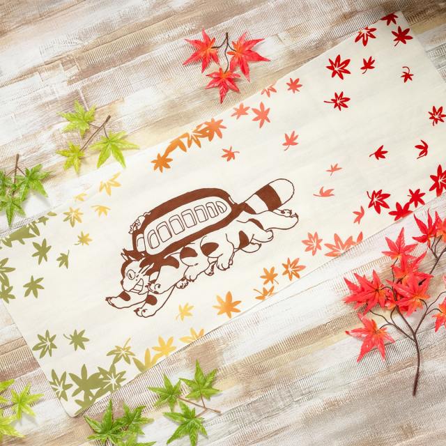 The final product in the autumn collection pays homage to another famous face from the film, the Catbus, who can be seen racing through an autumn scene filled with momiji in autumnal hues.