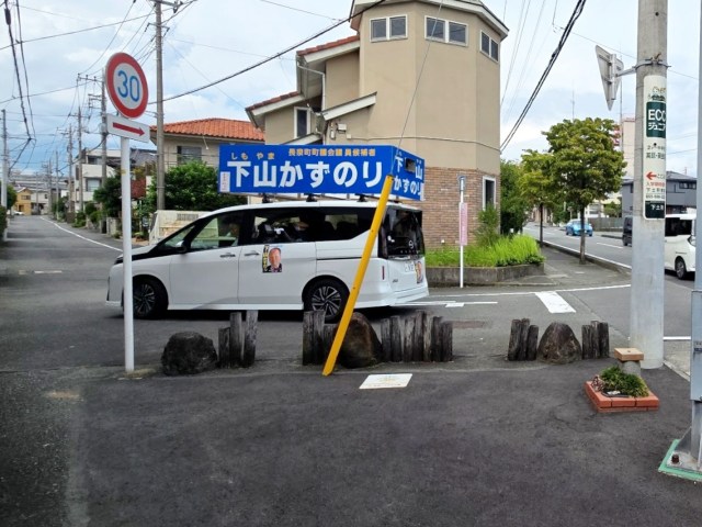 ▼ Sure enough, the sign on the top of the campaign van read “山下かずのり” (“Kazunori Shimoyama”).