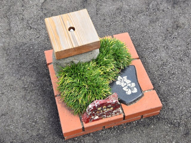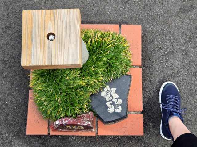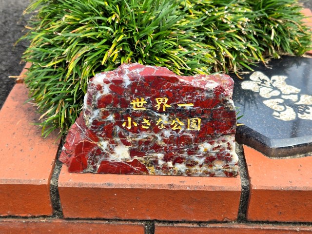 The coloured stone acts as a monument, with an inscription that reads “世界一小さな公園” (“World’s Smallest Park”).