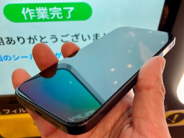 That’s the quandary our Japanese-language reporter Masanuki Sunakoma was facing with his phone recently. The guy may not be all thumbs, but he’s at least 75-percent thumbs when it comes to film application, and he wasn’t looking forward to once again spiraling into the circle of frustration of going to the store, buying film, applying it, peeling it off because it wasn’t on quite right, screwing it up again, and repeating the whole process multiple times until eventually just giving up and settling for a sub-par fit.