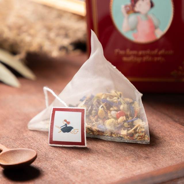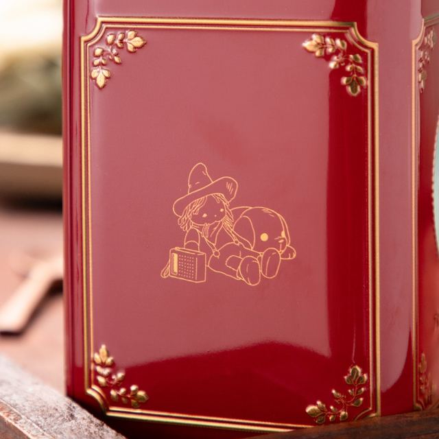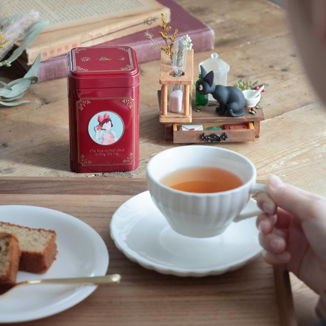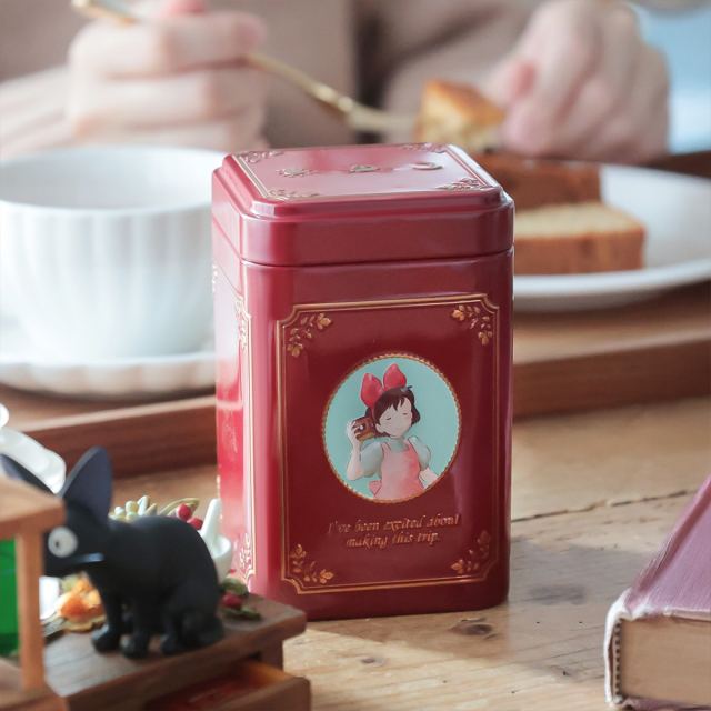 With gold accents throughout, the tin is beautifully made, and the attention to detail extends to the eight original tea bags inside, which contain a blend of Ceylon tea and chamomile. The tea is said to have a fruity aroma and is gentle and easy to drink, and the tag is gorgeous to look at, as it recalls the witch motif seen on the wooden board outside Kiki’s family home.