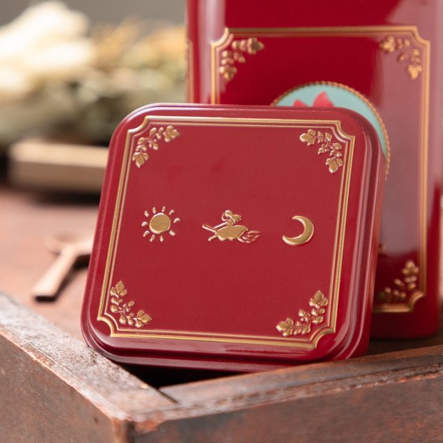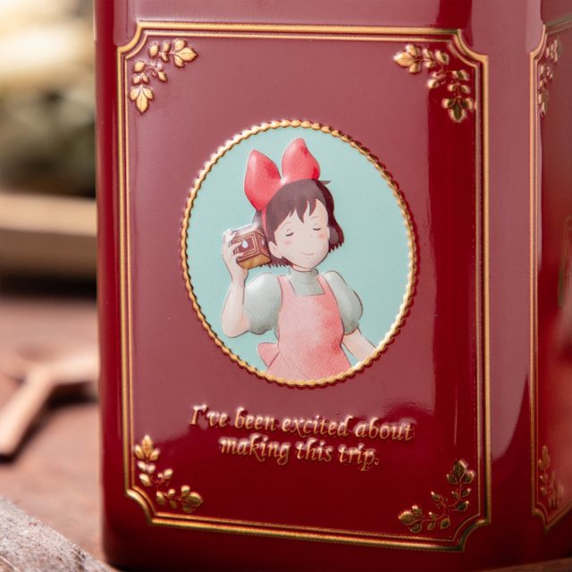 While the tin in the film has a round blue accent on one side, the details of the design remain unclear. That gives Donguri Kyowakoku a bit of creative freedom with the product, and they’ve decided to place Kiki inside the blue circle, where she can be seen rattling the tin with a smile, just as she does in the moment she retrieves the item from her bookshelf in the film.