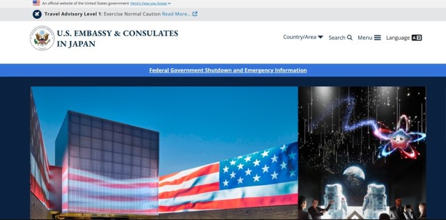 The embassy’s tweets do include “For information on our services and operating status, visit travel.state.gov,” but that just takes you to the top page of the U.S. Department of State’s Bureau of Consular Affairs, and in addition to not being Japan-specific, it currently has no mention of the government shutdown at all.
