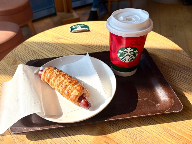 ▼ In this brightly lit setting, a hot latte and sausage pie taste even better than usual.