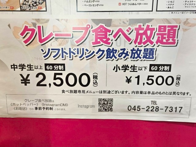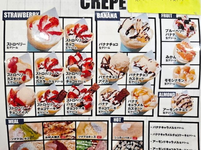 Here, you’ll find an all-you-can-eat crepe deal, which costs 2,500 yen (US$16.10) for middle school-aged students and older, or 1,500 yen for elementary school-aged children and younger.