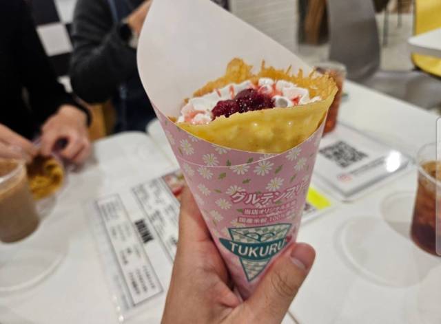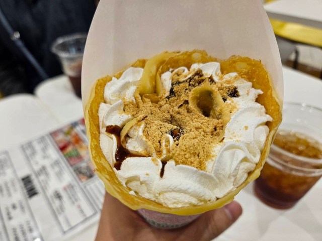 It turns out you can have too much of a good thing, because despite the dough being gluten-free, and therefore easier on the stomach, each crepe is absolutely stuffed with cream, making it difficult to get through more than one.