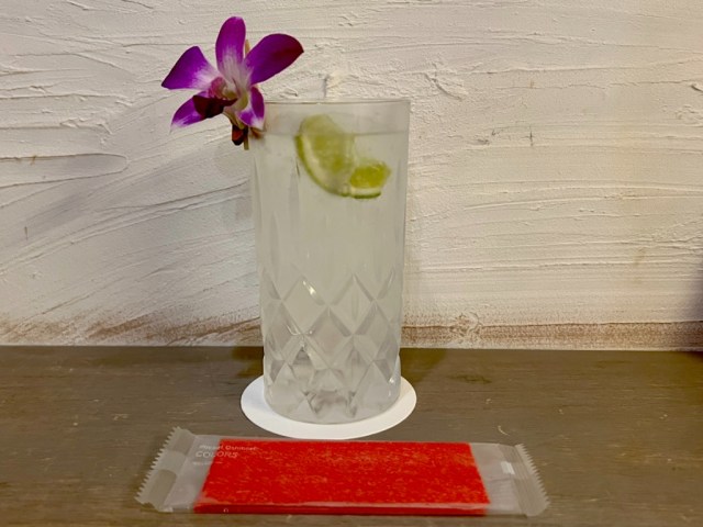 Our drink came with a slice of line and orchid garnish and tasted as beautiful as it looked, flavorful with a crisp finish.