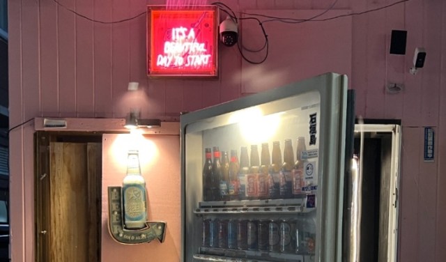 There’s nothing for sale inside the machine, but Okinawan spirits and delicious deserts are waiting on the other side.